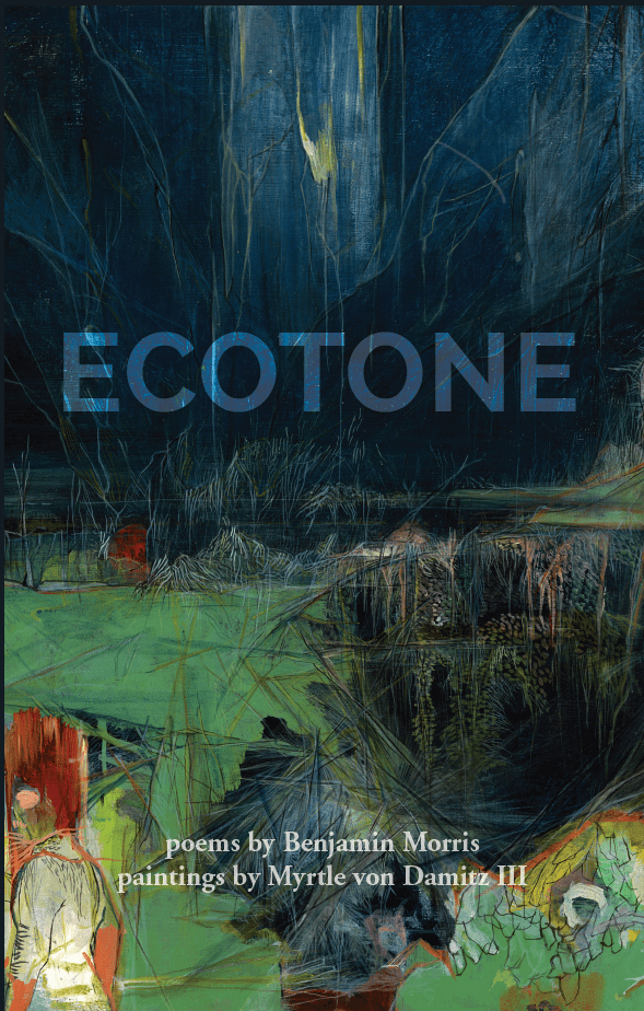 Published by Antenna/Press Street Press, Ecotone is a collection of poems written in residence at A Studio in the Woods in New Orleans, inspired by the environment of coastal Louisiana. Giving voice and life to an endangered landscape beset by disaster, degradation, and invasion, these poems chart the journey of an unknown group of travelers through a region renowned for its beauty and mystery. Appearing in Antenna’s series of inter-arts collaborations, Ecotone features nine works by the painter Myrtle von Damitz III in a 60-page, perfect-bound, full-color edition.